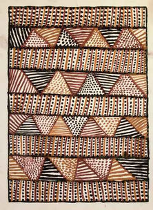 All Jilamara (design) is originally drawn from the body painting which accompanied the pukumani (funeral) and kulama (initiation/yam) ceremonies. All the artists living at Milikapiti are drawing on collective Tiwi memory, and the individual expression and aesthetic qualities of each artist’s work is reflective of their personal interpretation of traditional Tiwi design or Jilamara.